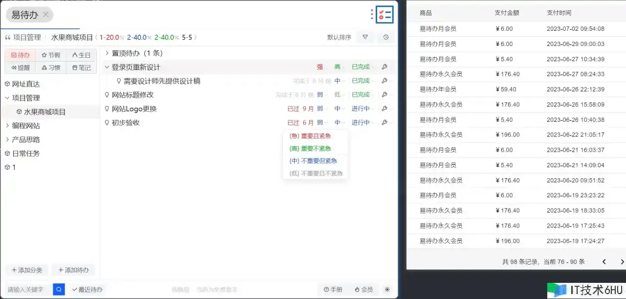 如图,易待办 是一个俗称程序员独立开发三大件 导航待办记账 之一的 待办 东西。
