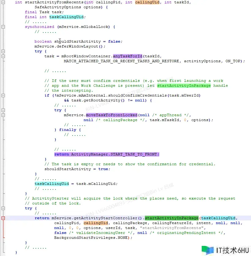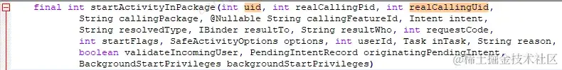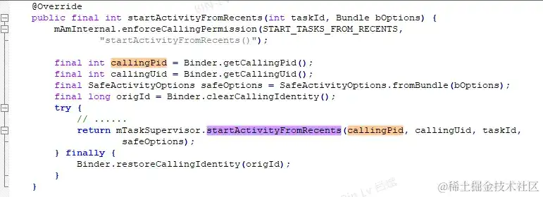 上面剖析realCallingUid便是ActivityTaskSupervisor.startActivityFromRecents办法的传参callingUid: