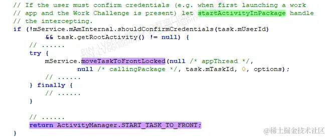 而是直接把该Task移动到前台,然后回来ActivityManager.START_TASK_TO_FRONT: