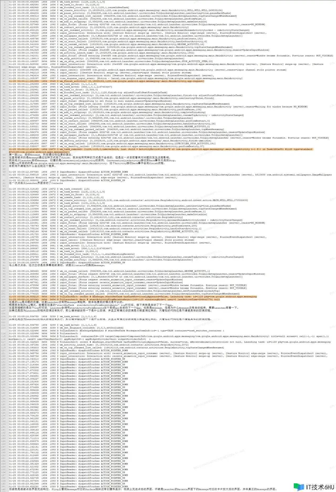 查看SystemLog,发现Launcher调用startActivityFromRecents办法发动Message后,紧接着便是以下log:
