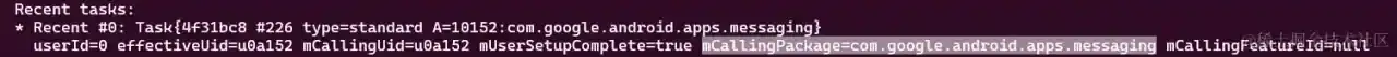 即这个Task是之前发动过的(不管现在是否还存在),因而假如咱们想要让取得的这个Task的mCallingUid是“com.google.android.apps.messaging”,那么就需求让这个Task创立的时分是由Message本身发动的。