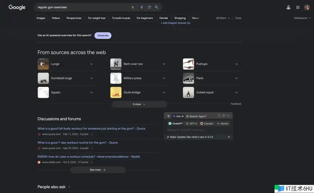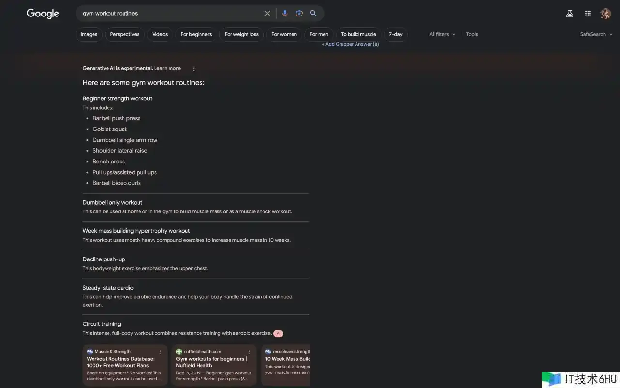 但是,假如我输入gym workout routines,我会得到下面的成果: