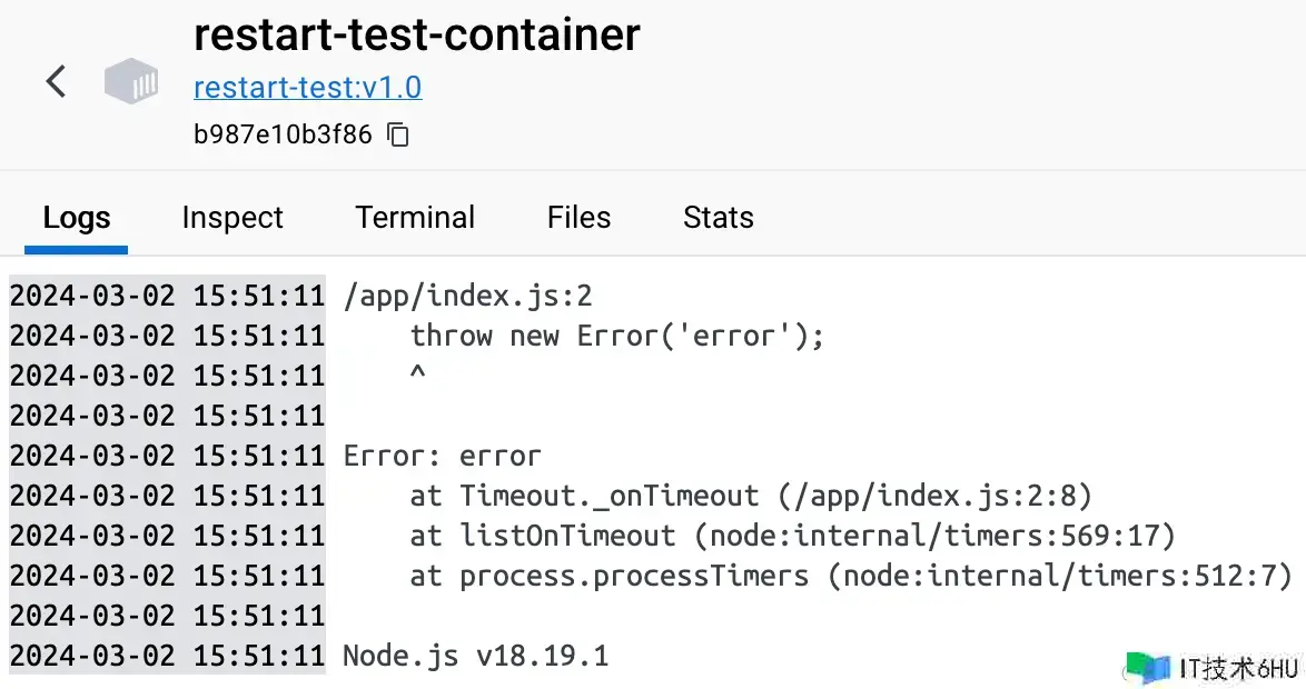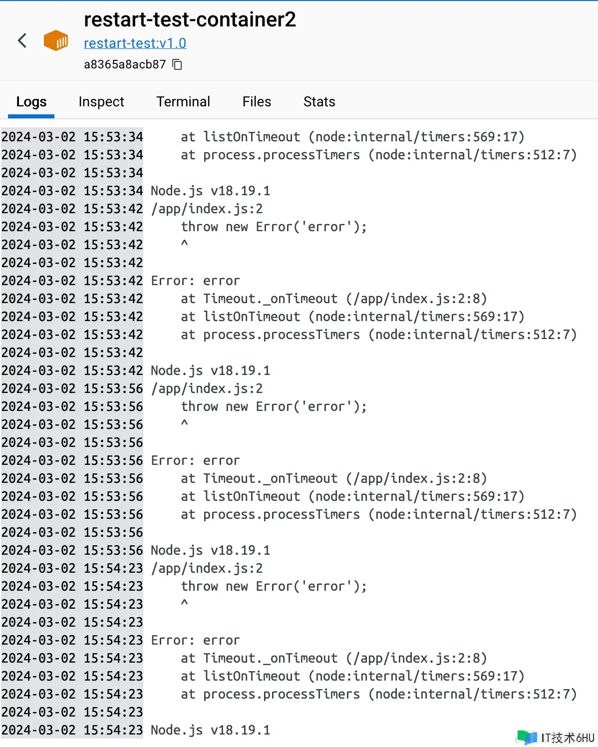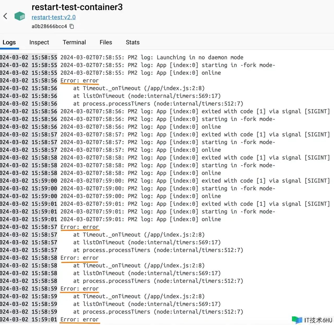 docker run -d --restart=always --name=restart-test-container2 restart-test:v1.0