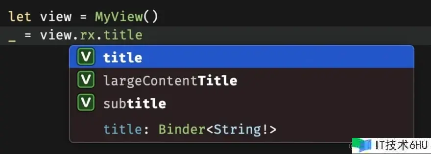 只需开端在任何 AnyObject 承继类上编写 .rx,你就会立即看到扩展根底目标的每个属性的主动组成绑定器: