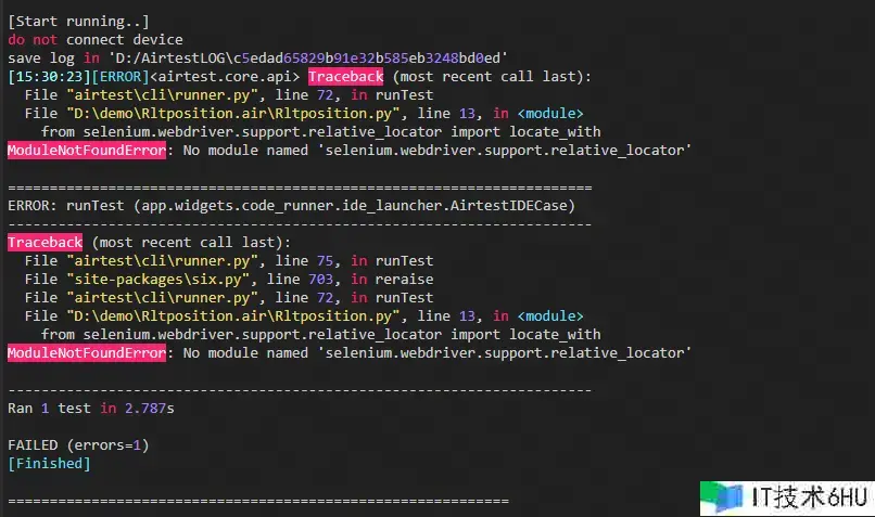 **留意:**假如运用AirtestIDE原生环境跑测的同学们可能会发现出现了这个报错信息:No module named 'selenium.webdriver.support.relative_locator',这个是AirtestIDE环境下的兼容性问题,现在咱们已经在排期兼容了,后续有新的兼容信息会通知咱们!