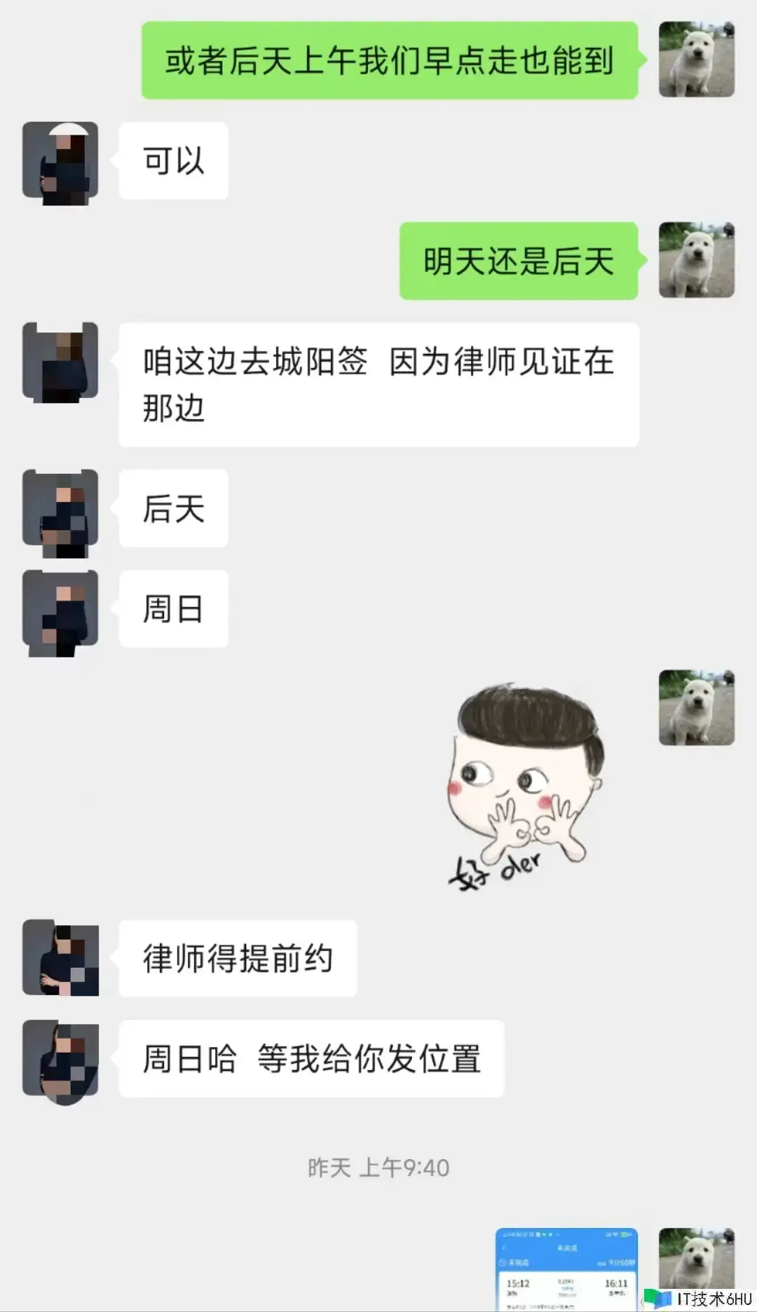 怕早上来不及,所以我和我妈提早一天去的,在酒店住下了,中介那儿说早上接上咱们和律师一块去签合同。