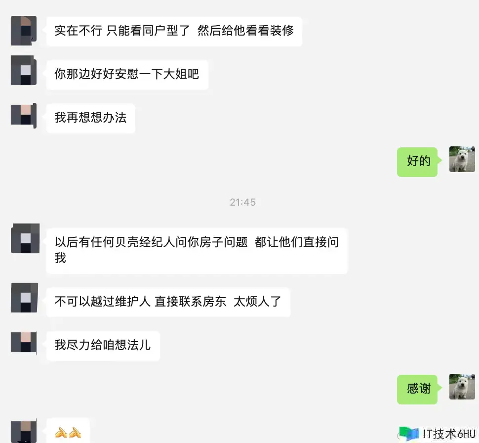 好在仍是有些靠谱的人,保护这个房子的中介在想方法不让客户看房的情况下能不能把房子卖出去: