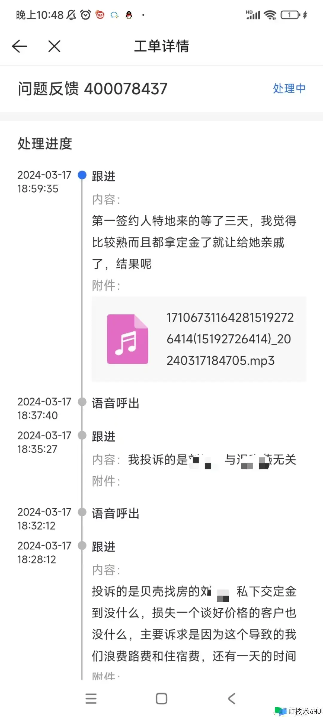 然后我就把中介给投诉了