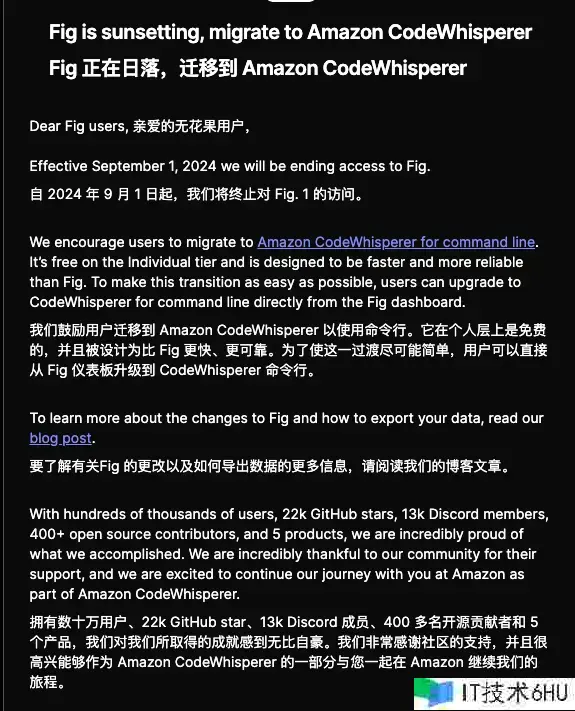 产品将在 9月1日 停止服务,引荐用户迁移到 CodeWhisperer。