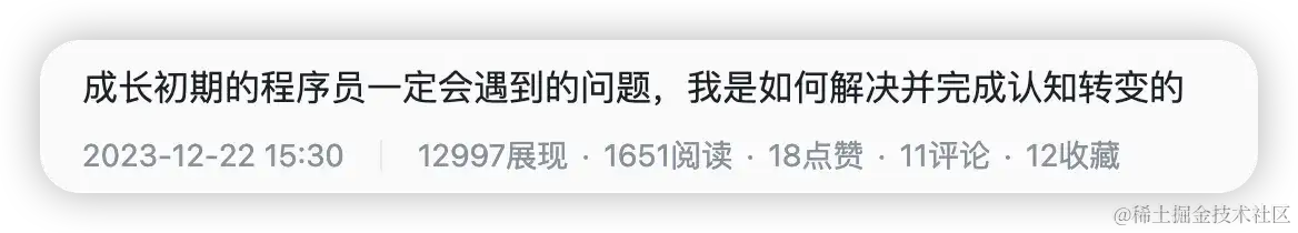 《生长、打破、内卷、迷茫、离开,大厂我劝你必定要去,但你却不必定要挑选留下》仍是以这篇文章举例,假如让我在优化一次,我或许会把后半段优化为