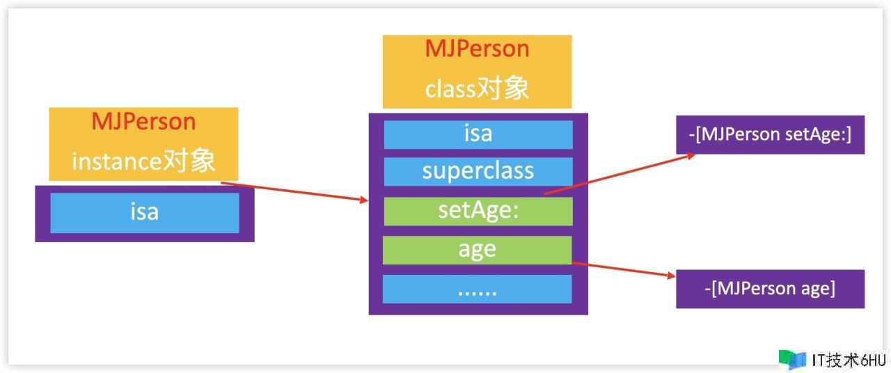 前面学过isa的指向,咱们知道目标办法是寄存类目标中的,既然两个目标的setAge目标办法不一样,那是不是他们isa指向的类目标也不一样呢