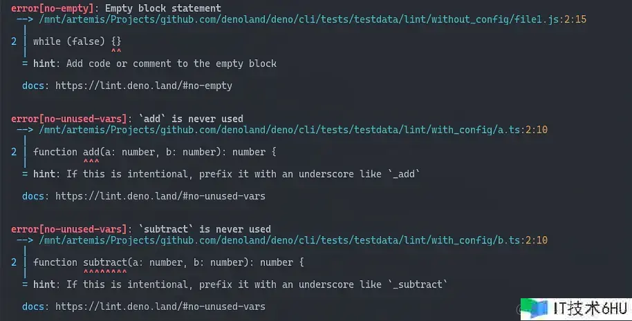 deno lintdeno doc 有一个新的调试打印机。咱们将在行将发布的版别中将此扩展到其他子指令。