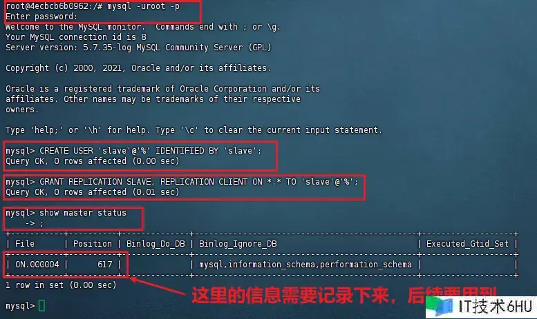 - MASTER_LOG_POS=617:指定从二进制日志文件的哪个方位开端仿制数据。这儿设置为617。