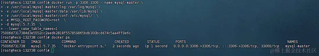 –name mysql-master:给容器指定一个名称,这儿命名为mysql-master。
