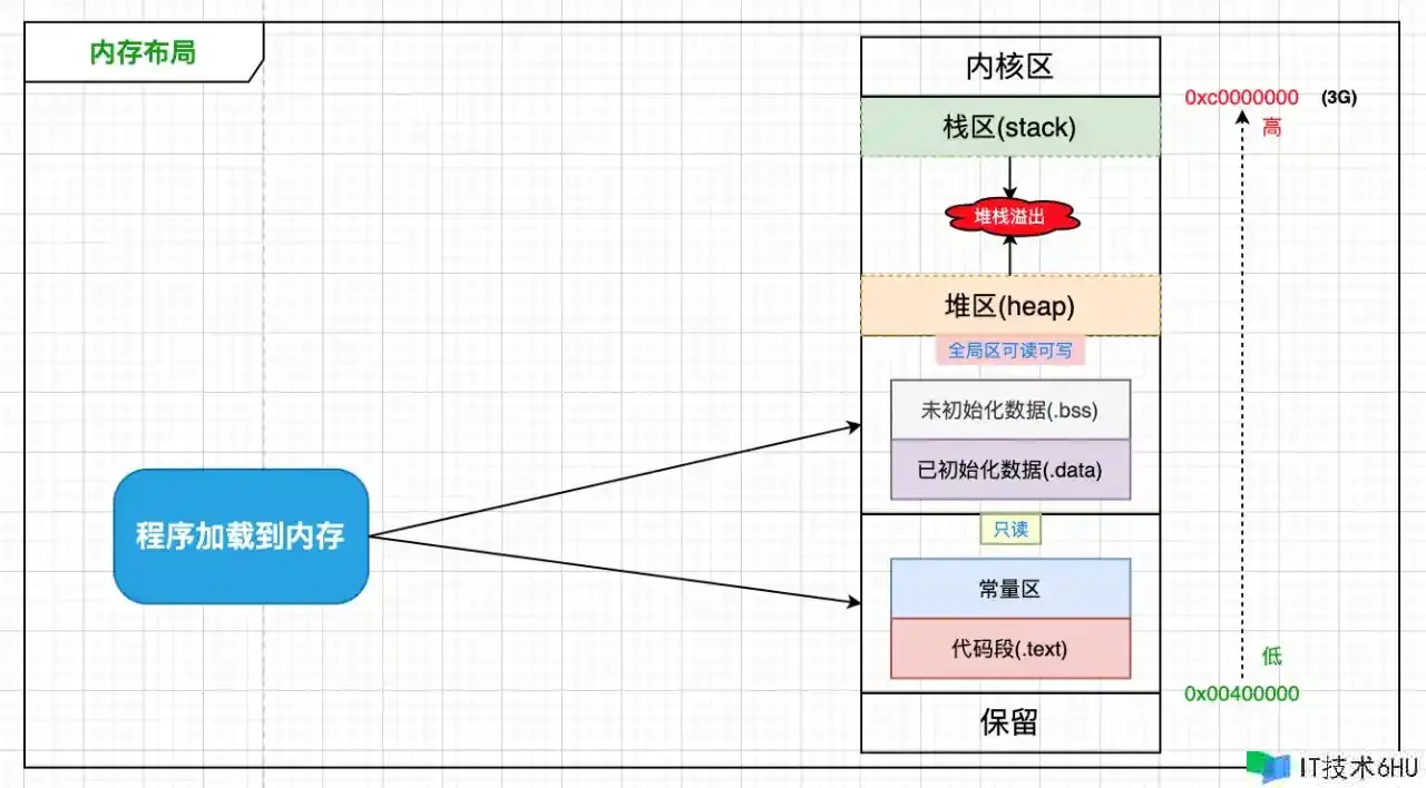 - 内核区:首要处理内核模块,比方咱们的体系内存为 4GB,那么咱们实际上能运用 3GB,剩余的 1GB 便是给了内核区,指针地址 0xc0000000(3x1024x1024x1024)