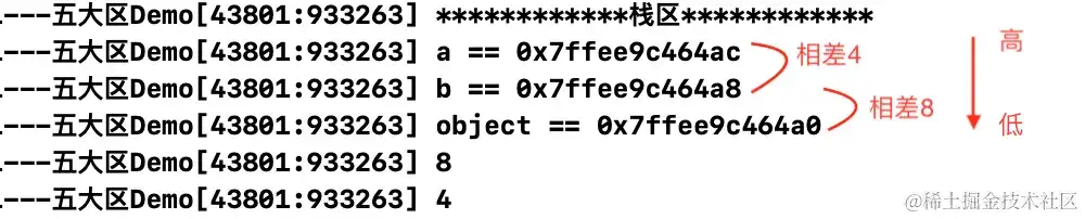 栈区里边会放一些函数参数以及一些部分变量,逐渐增多并在内存地址中由高向低延伸,因为栈的数据结构的原因,它的内存地址是连续的,栈区的内存巨细在App发动时就确认下来的,若在压入时请求的内存空间大于栈的剩余空间,就会呈现栈溢出(内存泄露),打印的地址为0x7在栈区