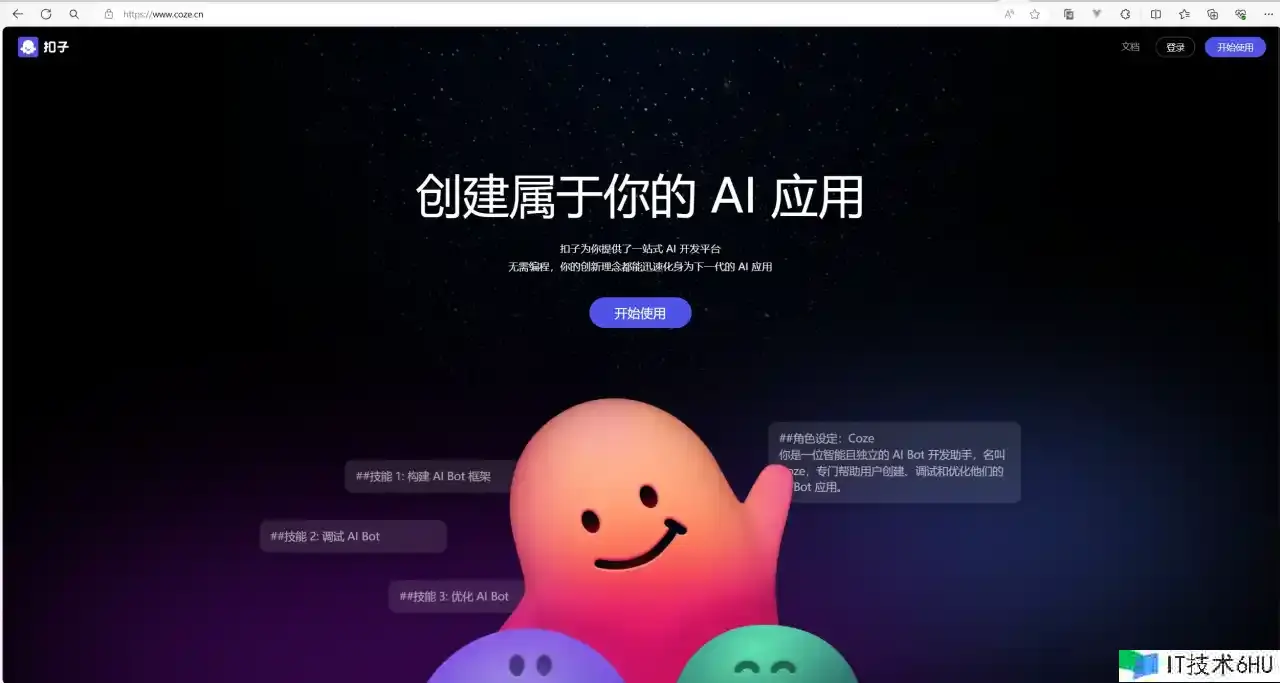 开始 首要访问www.coze.cn,点击开始运用,用手机号或者抖音登录即可。