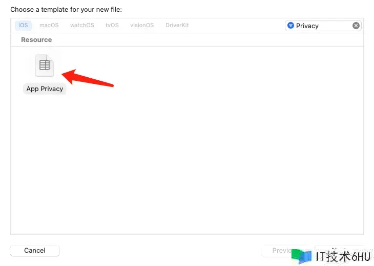 选中当时的项目,Command + N,查找privacy -> 挑选App Privacy,输入称号PrivacyInfo.xcprivacy,如下图,挑选要增加的Target,然后点击完结。
