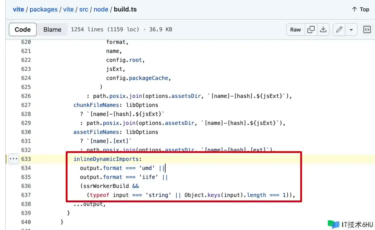 这显着是说锅是UMD的,inlineDynamicImports与manualChunks是冲突的,不能一起存在。Vite底层处理UMD时估量装备了这个选项。咱们到Vite的GitHub源码里也找到这段,验证了咱们的想法:
