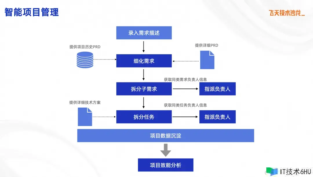 接下来我讲一些简略的场景,给咱们参阅。例如咱们能够完成智能的项目办理,能够完成细化需求,拆分子需求,智能的指使负责人,拆分使命等等,这些作业都能够交给 AI 来做。