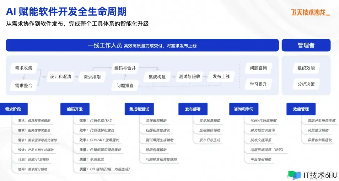 在需求阶段、编码阶段、集成测验阶段、发布布置阶段、咨询学习阶段、效能办理阶段等各个阶段完成智能化晋级。