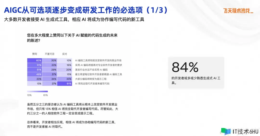 根据前面的调研陈述和后面相关的调研数据,咱们能够看到,在国际的开发者范围内,AI 现已成为了开发者的必选项,咱们软件研制的未来一定是 AI 驱动的场景。