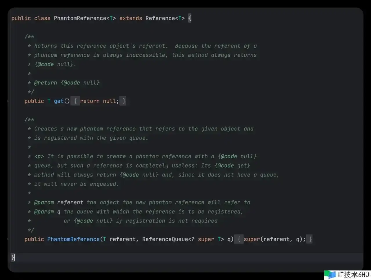 在 JDK1.2之后,用java.lang.ref.PhantomReference类来表明虚引证。虚引证是最弱的引证类型,它简直对目标没有任何影响,不能经过虚引证获取目标,也不能经过它来阻止目标被废物收回。从源码中能够看出它只要一个结构函数和一个 get() 办法,并且它的 get() 办法仅仅是回来一个null,也便是说将永久无法经过虚引证来获取目标,虚引证必须要和 ReferenceQueue 引证行列一起运用。