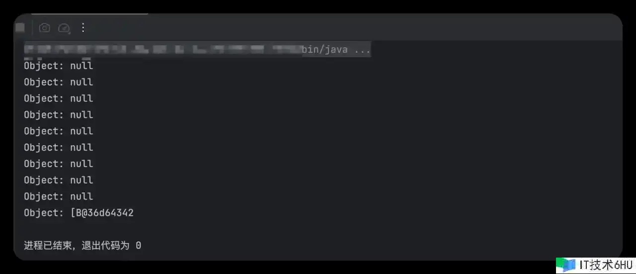 以下示例咱们设置JVM参数为:-Xms3M -Xmx5M,然后接连创立了10个巨细为1M的字节数组,并赋值给了软引证,然后循环遍历将这些目标打印出来。