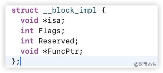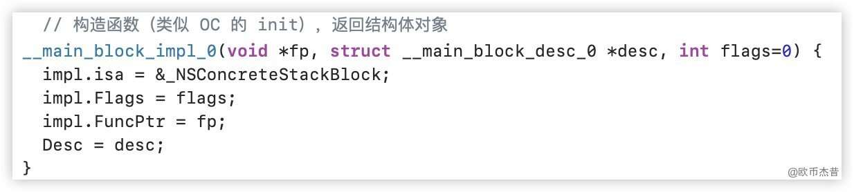 __main_block_impl_0结构方法接纳两个参数void *fp和struct __main_block_desc_0 *desc,可以看到此处代码传入的值是(void *)__main_block_func_0和&__main_block_desc_0_DATA