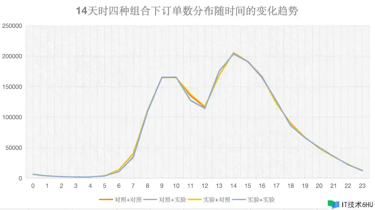 截止第二周(14天):各组订单数、可加价订单占比已根本无差异;每小时订单数散布有细微不同质