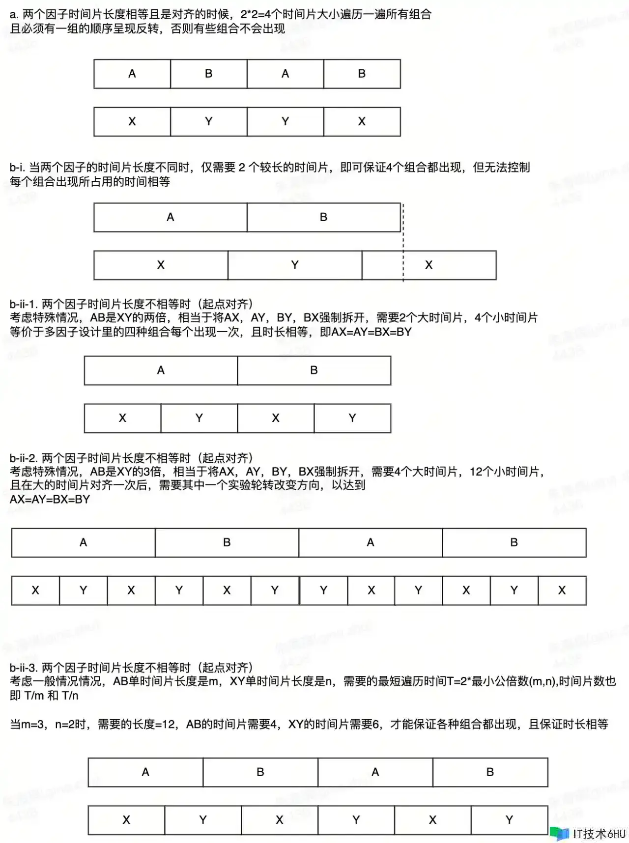 时刻片嵌套试验,存在2大试验规划变量时刻片长度的选取(5分钟,30分钟,1小时等等),试验次序的规划(随机次序,固定次序)。