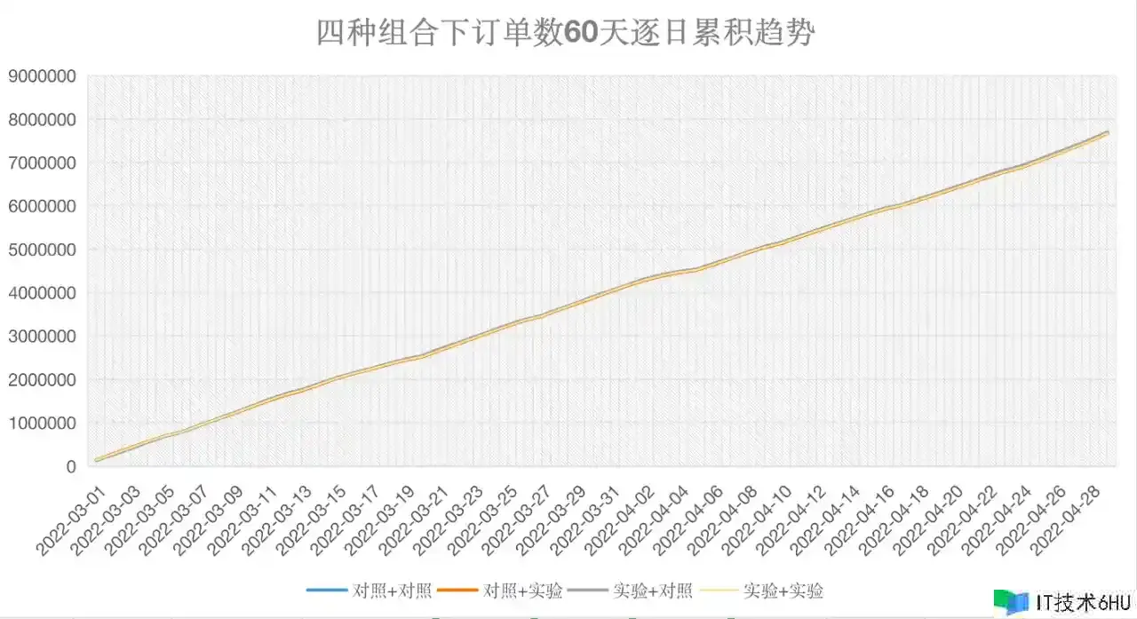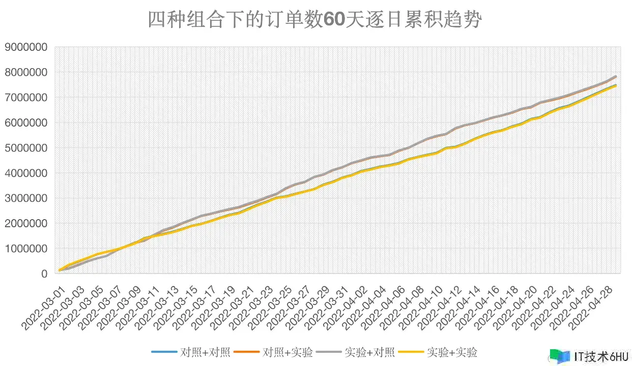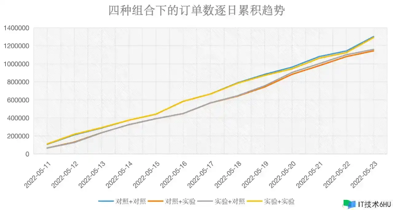 1. 四种组合下的订单数逐日累积改变趋势如下: