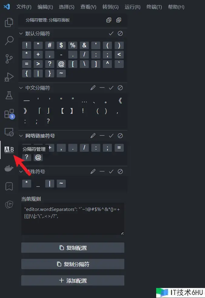 - 鼠标悬停提示分隔符信息:当鼠标悬停在VSCode编辑器的文本上时,该插件还能展现文本包含的分隔符,并供给点击切换是否在分隔符设置中启用该分隔符的功用,进一步增强用户的操作便利性。