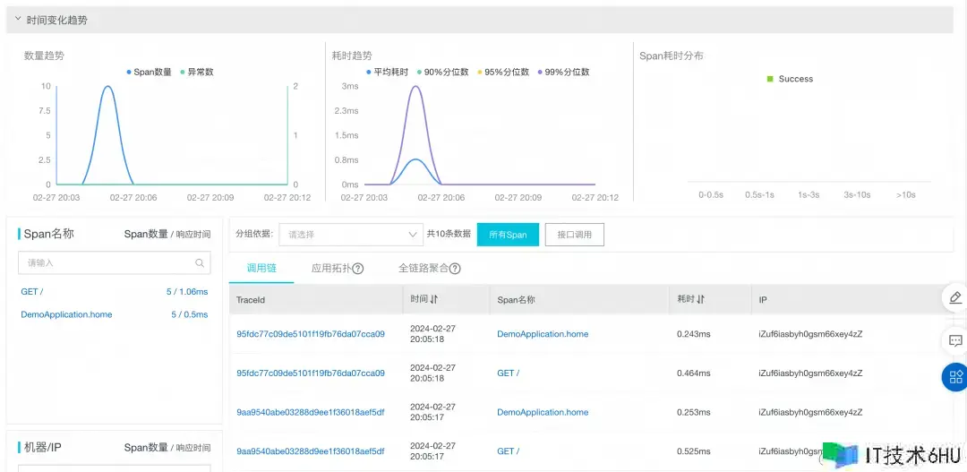 咱们测验进程中对使用发了 5 次调用,从图 5 的作用调用链记载的次数和调用链详情信息与实例使用都是共同的。