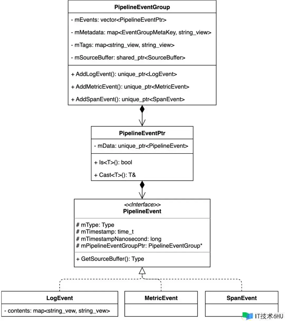 PipelineEvent是一个笼统基类,表示一个作业,它的成员变量包括作业类型、当时作业的收集时刻以及该作业地点的EventGroup。它的子类包括LogEvent、MetricEvent和SpanEvent,它们别离代表可观测数据中的Log、Metric和Trace。