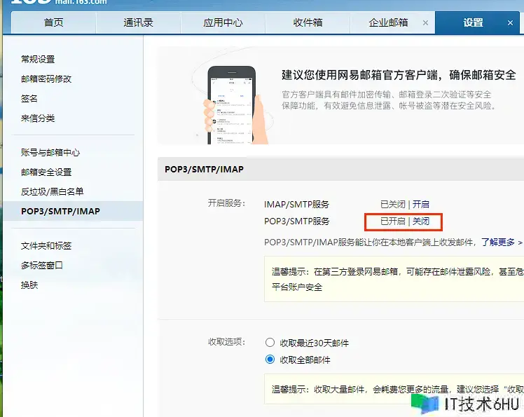 以163为例,翻开邮箱设置对应的smtp服务