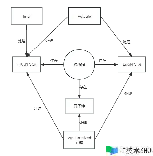 如上图所示,java的 volatile、final、synchronized 关键字都能够实现可见性。