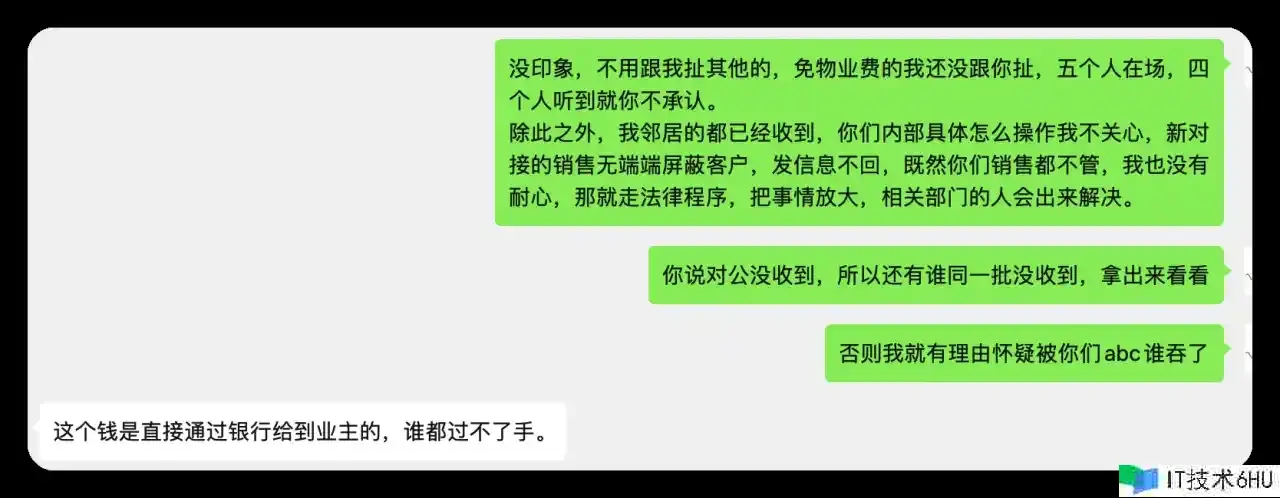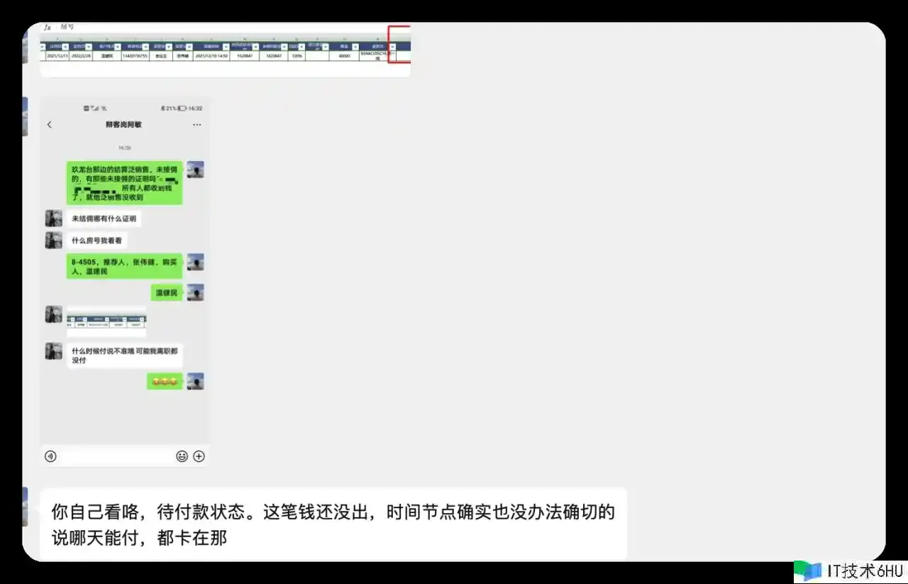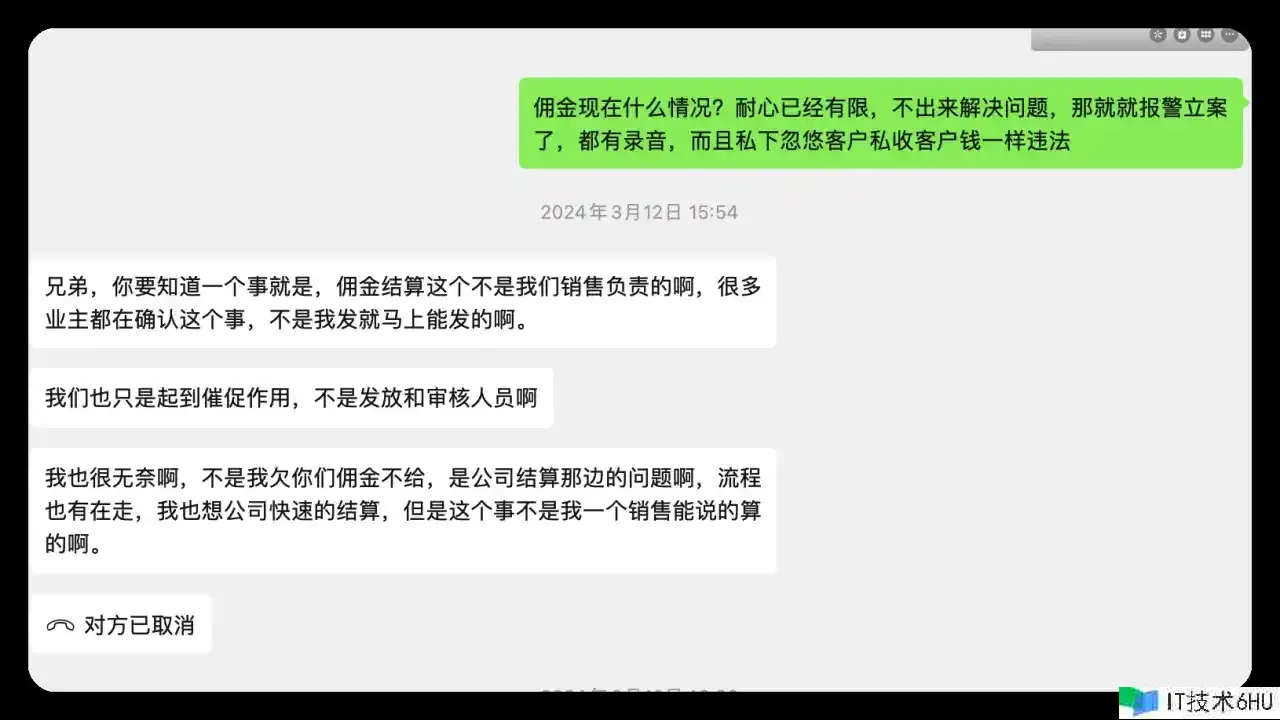 中介佣钱是很达观的,其时由于我亲属推荐我去,出售许诺税前有4w,其时看中这个返佣也促进我火急火燎的交了定金。现在3年过去了,这个佣钱依旧没有到账,我一度怀疑是中介搞ABC套路把我这个钱吃了,其他街坊的推荐佣钱都到了账,加上现在地产商没钱了,一起跟那个亲属有些过节,这个返佣更是遥遥无期。最终通过上面的录音获得了一丝话语权,知道了这个钱还在开发商手上,一直没有拨款下来到中介公司。下面是部分聊天记录: