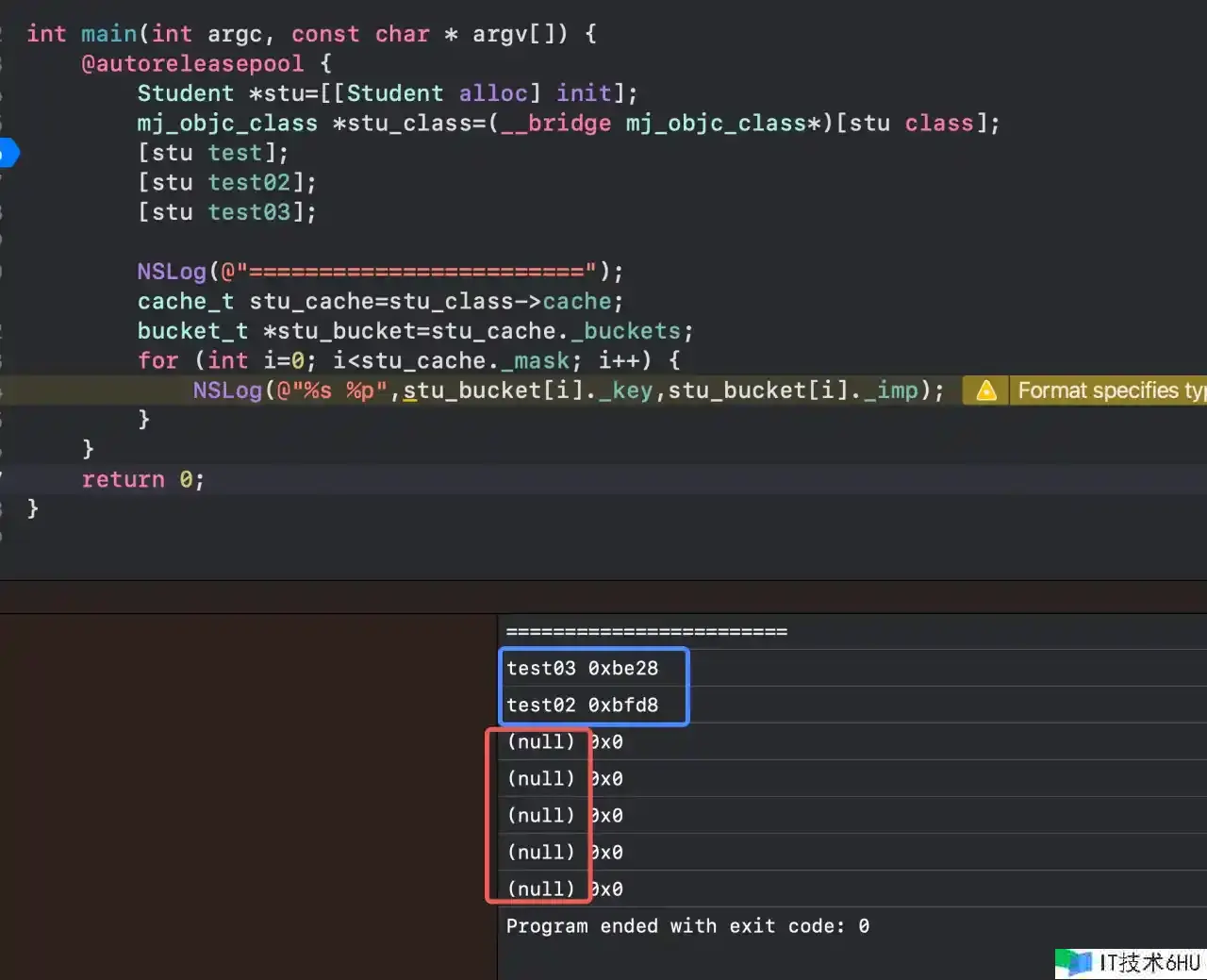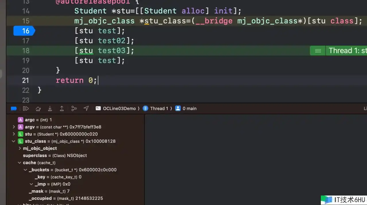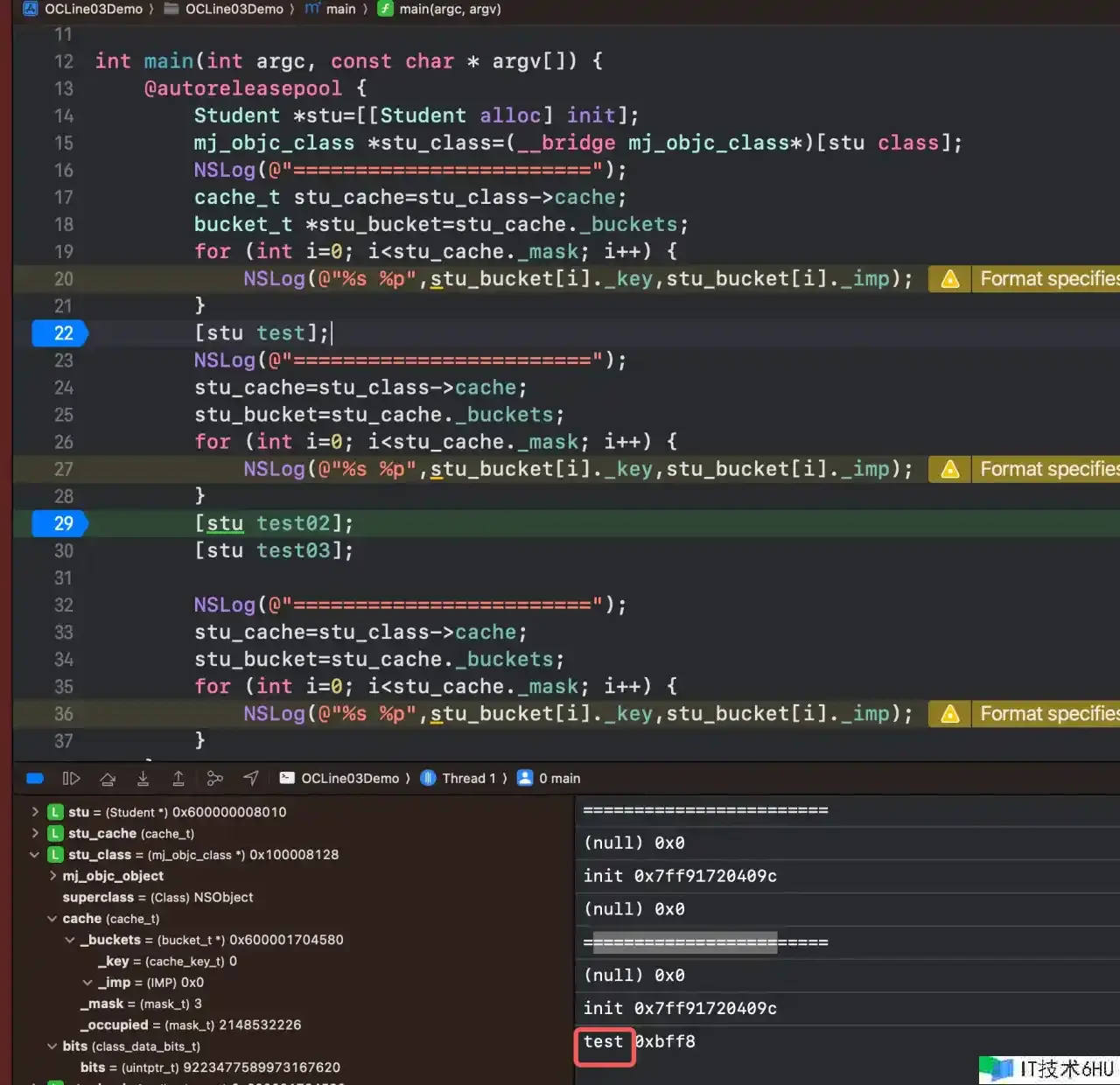 能够清楚看见,当我运用 @selector(test03)&stu_cache._mask 就能够得到下标,然后再从 bucket_t 拿到办法。