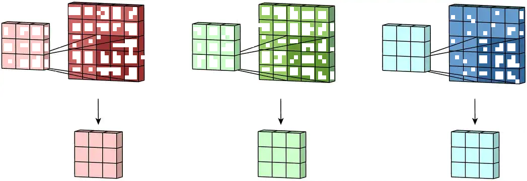然后将每个通道处理后的每个加在一起以形成单个输出通道。