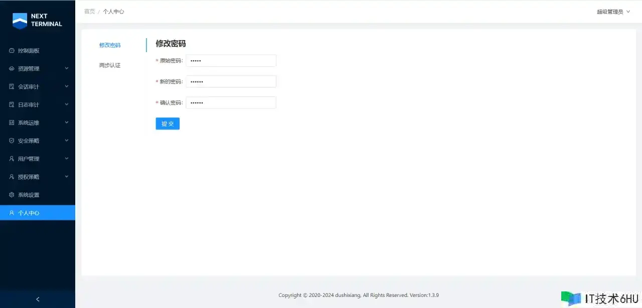 首次打开需要输入账号密码,Next Terminal 的初始账号和密码分别为:admin/admin。