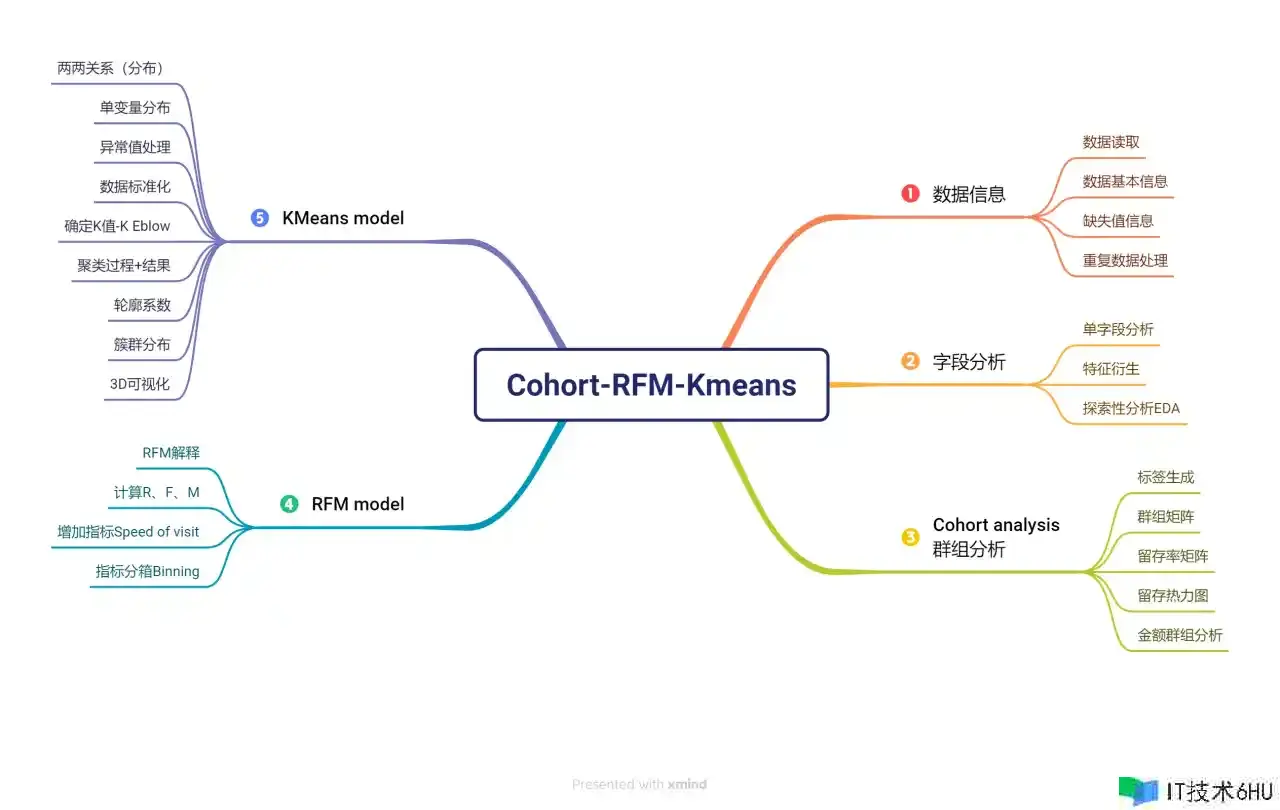 本文介绍用户群组分析Cohort analysis、RFM用户分层模型、Kmeans用户聚类模型的完整实施过程。
