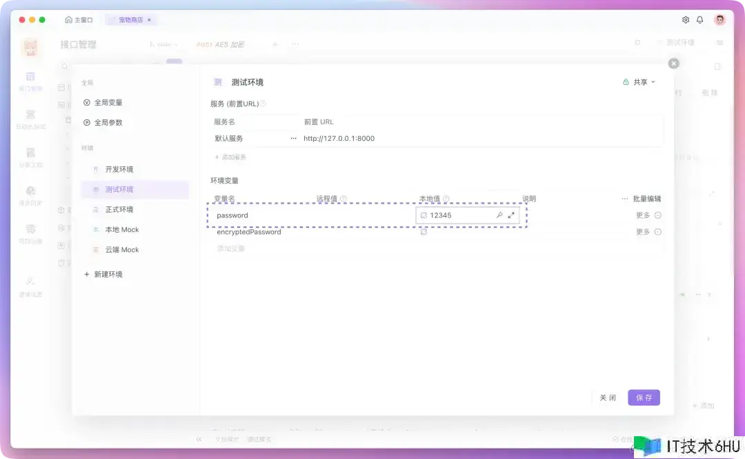 这里的{{encryptedPassword}}是 Apifox 的变量语法,它会被替换为「前置操作」中设置的环境变量encryptedPassword的值,也就是通过 AES 加密算法加密后的值。