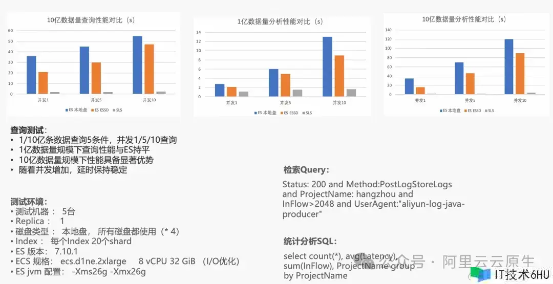 这儿在实验室环境中做了一下简略的查询剖析才能的测验。在 10 亿级别的数据量中做查询和剖析,SLS 响应时间在秒级,而 Elasticsearch 跟着并发增大,响应时间有显着上升,而且在全体延时上比 SLS 高。这儿还需求说到 Elasticsearch 的写入功用问题,测下来单核才能在 2MB/s 左右,而 SLS 单 Shard 写入能能够支撑到 10MB/s ,经过扩展 Logstore 的 Shard 数能够轻松地提升写入功用。